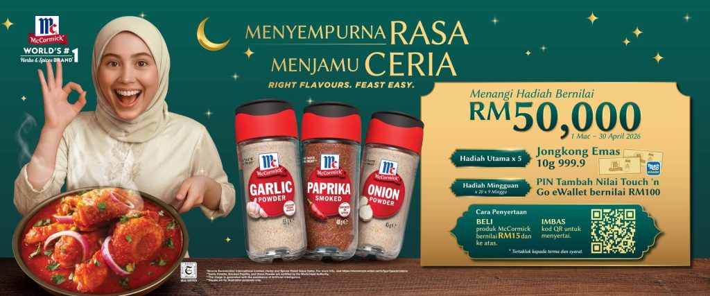 - Purchase any McCormick products worth RM15 and above in a single receipt ("Proof of Purchase") during the Contest Period from any retailers in Malaysia. One (1) receipt entitles each Participant to one (1) entry.